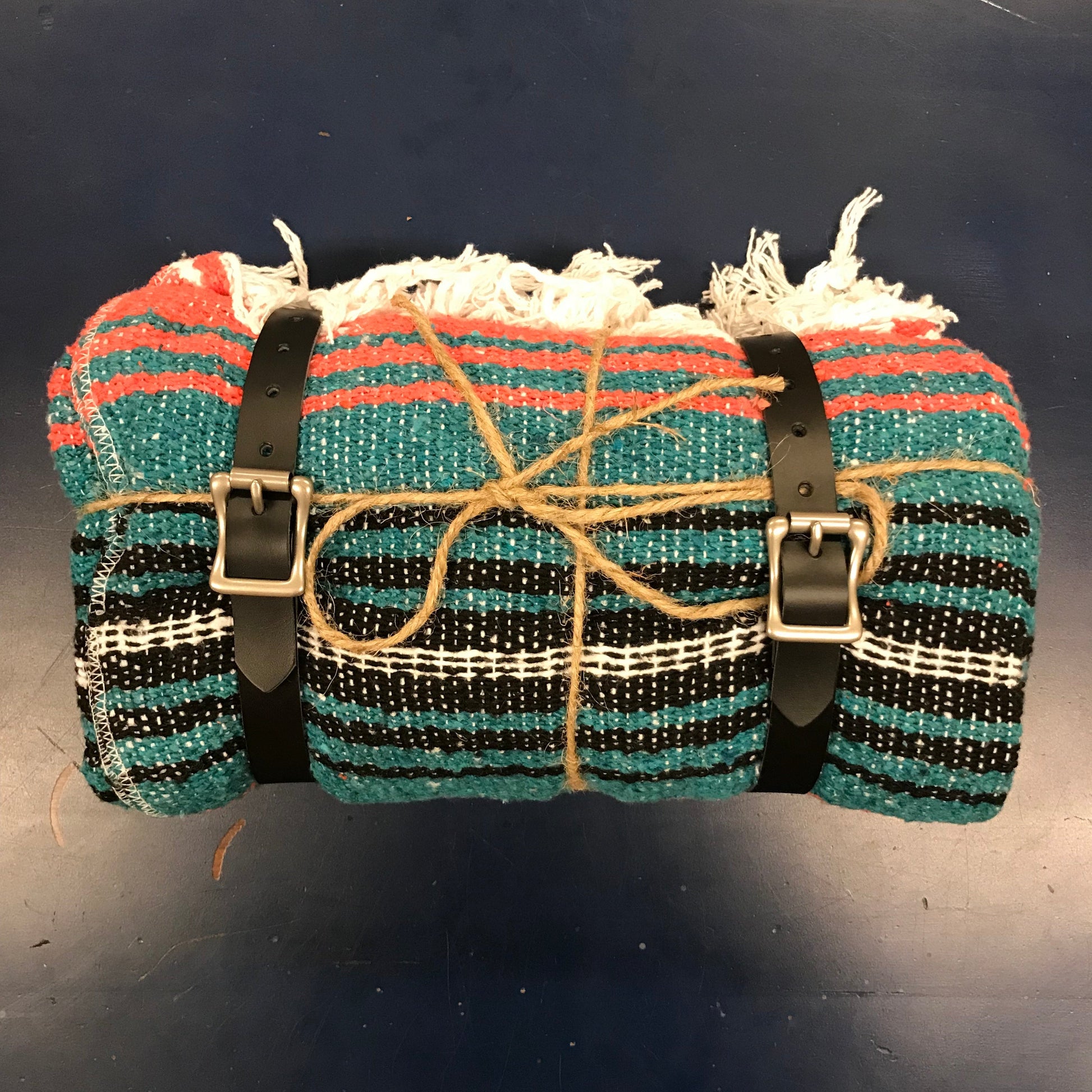 Classic style blanket roll, hand-made in the USA. Genuine Mexican blanket hecho en Rosarito, Mexico.